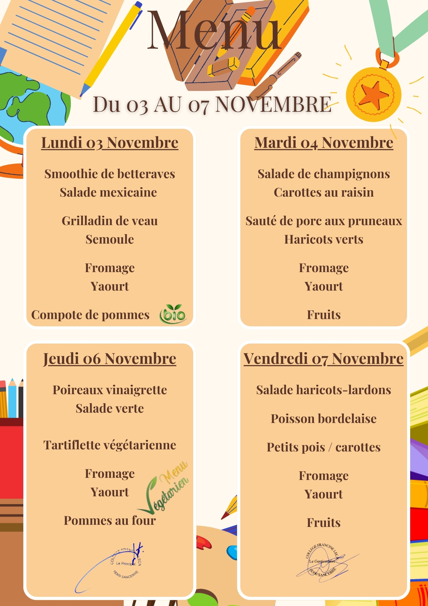 MENU DU 03 AU 07 NOVEMBRE 2025