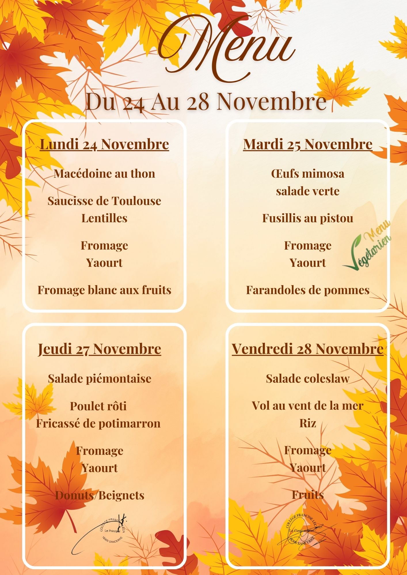 MENU DU 24 AU 28 NOVEMBRE 2025