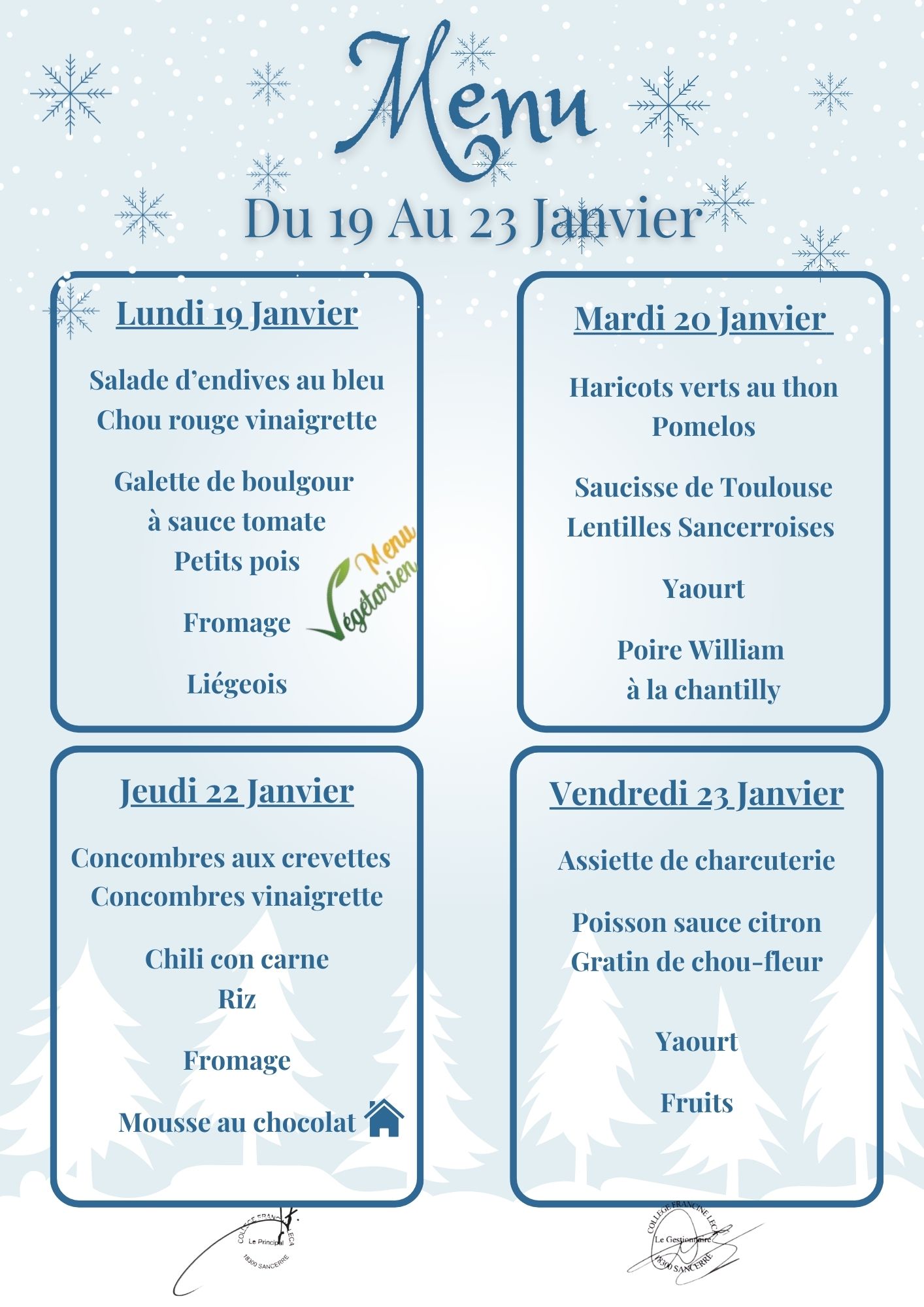 MENU DU 19 AU 23 JANVIER 2026