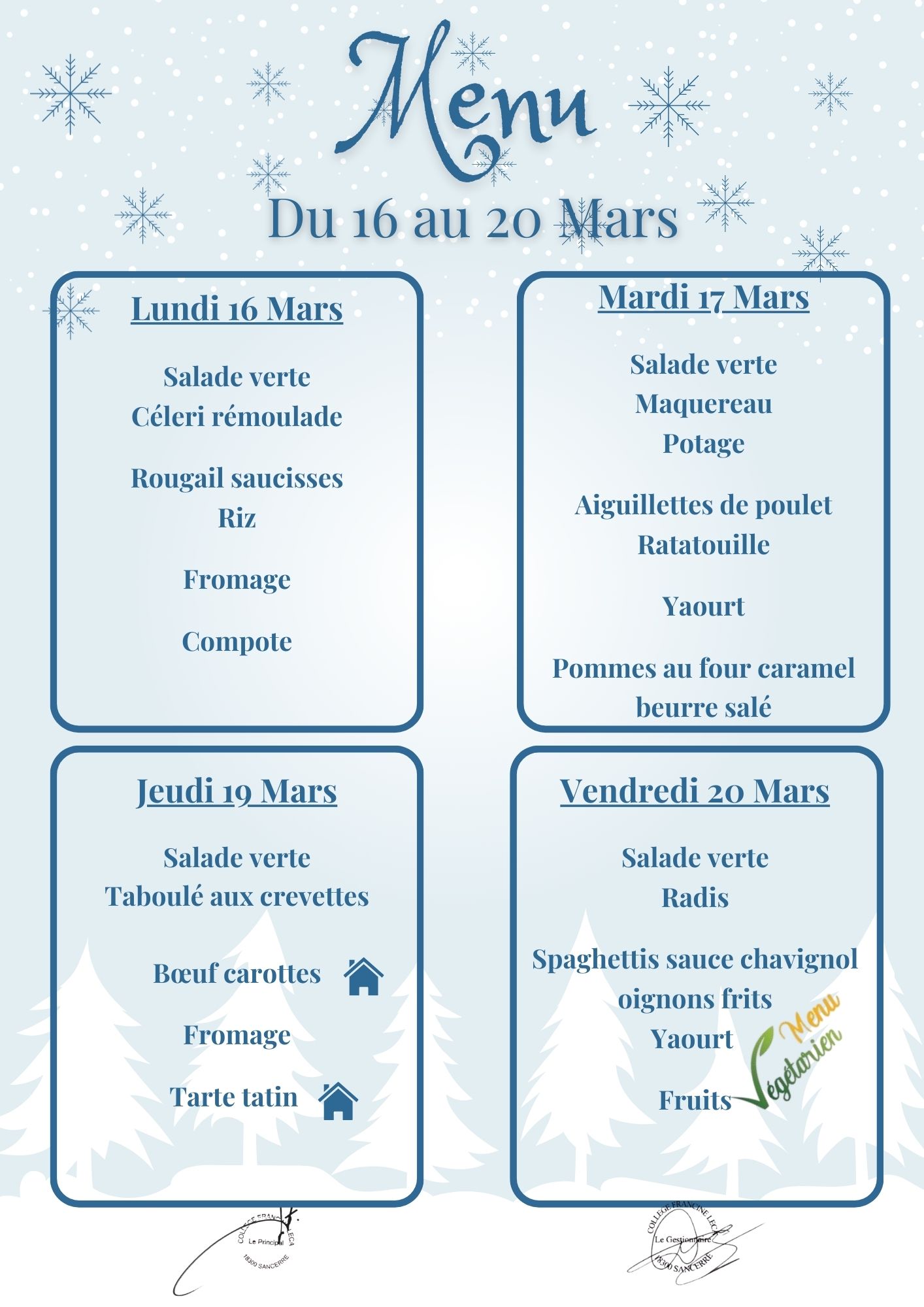 MENU DU 16 AU 20 MARS 2026